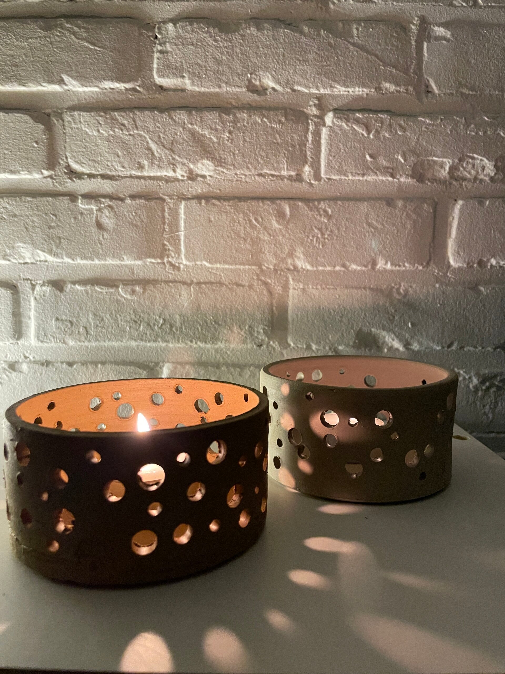 Theelichtje met gaatjes in 2 varianten.